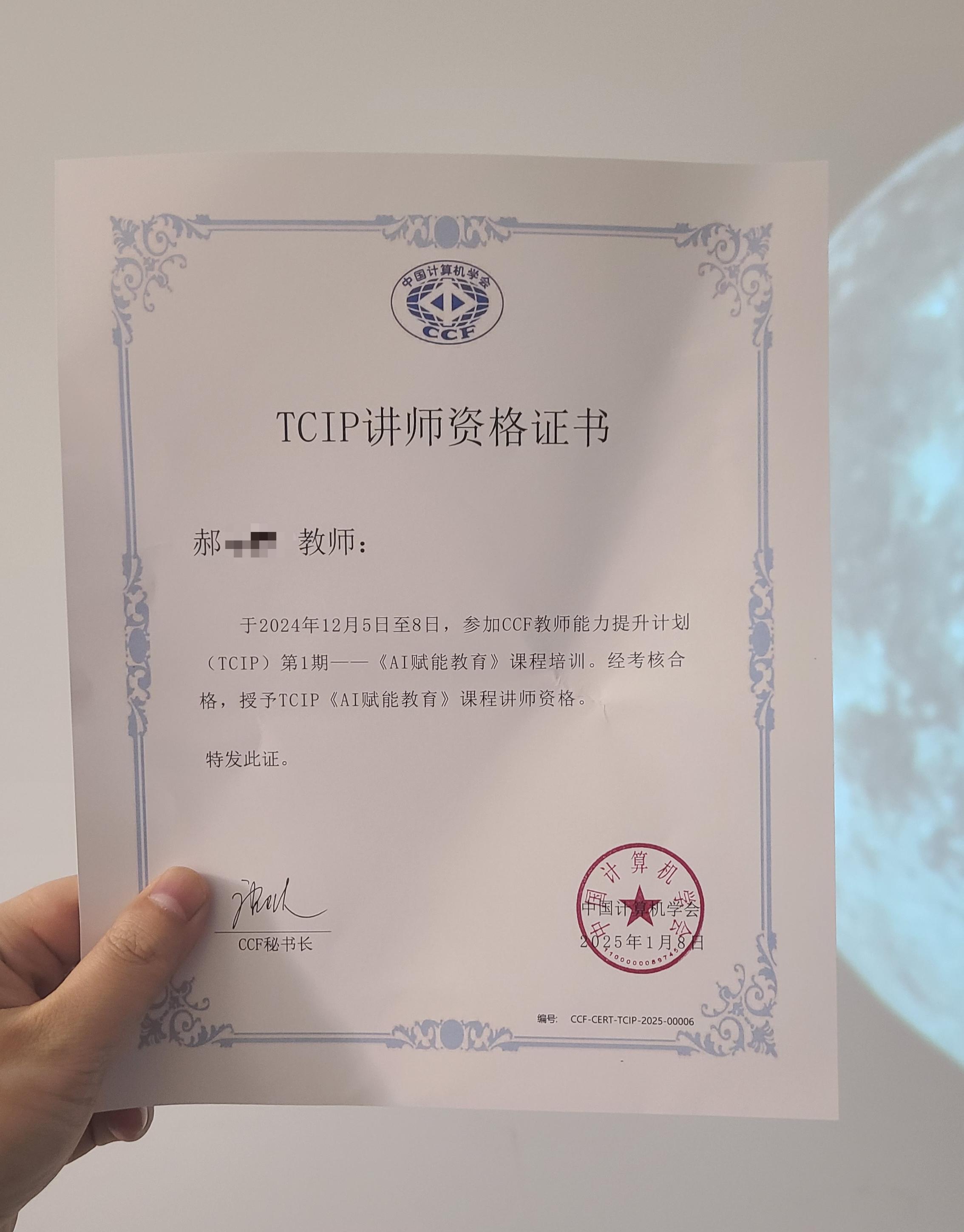 参加中国计算机学会培训,获得TCIP《AI赋能教育》讲师资格。得到APP《AI学习圈》邀约讲师。